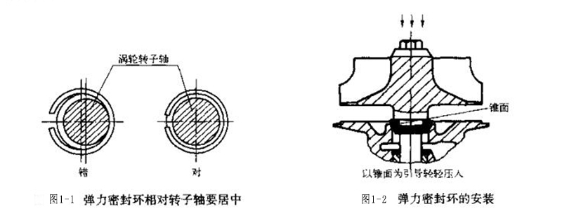 另外,為防止在套裝時環(huán)從一邊滑出或斷裂,所以彈力密封環(huán)相對于轉(zhuǎn)子軸的位置要居中,并依靠中間殼座孔上錐面作引導(dǎo),如圖1-1、圖1-2所示,使之能順利滑入密封環(huán)座孔中。