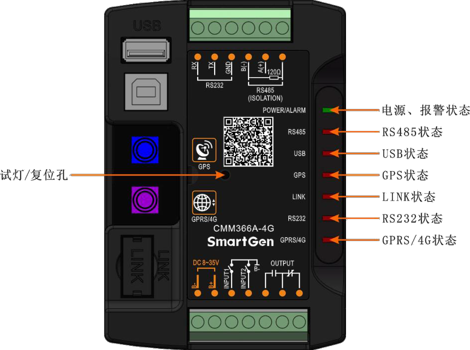 3、模塊供電電源范圍寬 DC (8~35)V,可直接使用發(fā)動機(jī)自帶的起動蓄電池;